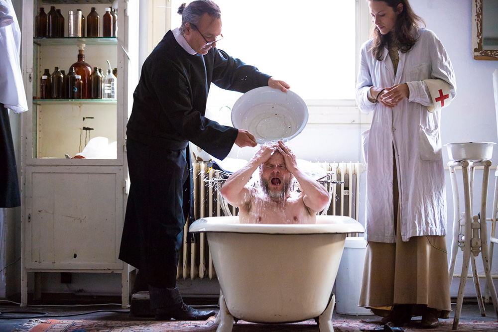 | HAMLETANSTALT beim Festival ODYSSEE : ERINNERN 2. Mai, 19.00 Uhr, Stadttheater Bremerhaven »Dementen die Bühnen!« Mit diesem Auftrag geisterten Ender/Kolosko ein Jahr lang durch Hamburgs Demenzstationen: Die HAMLETANSTALT ist, wie das Reichskrankenhaus in Lars von Triers »Geister«, der Archetypus eines Altenheimes: Hier dreht ein dementer Regisseur »Hamlet« im Dritten Reich, hier probt Pflegedienstleitung Held ihr Alzheimer-Aufklärungs-Musical. Bühneninstallation und Sprachkonzert schaffen den Rahmen, in dem man gemeinsam eine erfüllte Zeit verbringt: "Dabei scheint mir die großartige Geste der Arbeit darin zu liegen, dass hier nicht die Kranken von den Gesunden etwas lernen sollen, sondern diese von jenen, vergleichbar mit Robert Wilsons frühen Arbeiten", sagt der Theaterwissenschaftler Müller-Schöll. Gemeinsam mit Menschen aus Bremerhaven begibt sich die HAMLETANSTALT auf die Suche nach einer gemeinsamen Zeit, jenseits von Begriffen wie Krankheit und Normalzustand. „Die verblüffende Happening-Atmosphäre des Alzheimer-Aufklärungs-Musical kam an.“ (Ulrich Müller, Nordsee-Zeitung, 5. Mai 2014) |