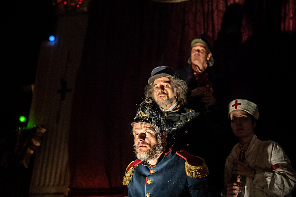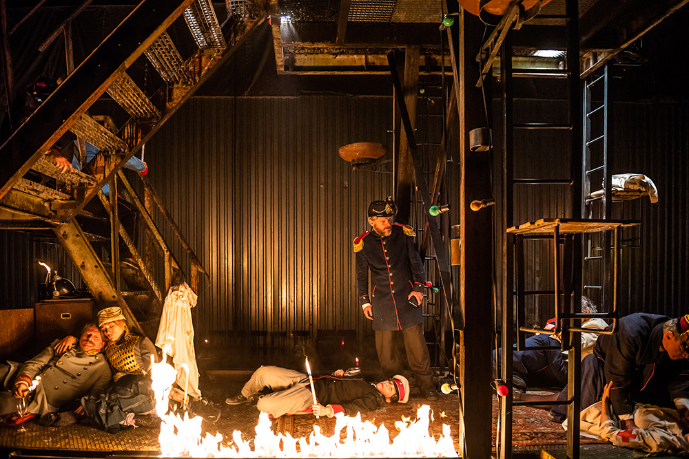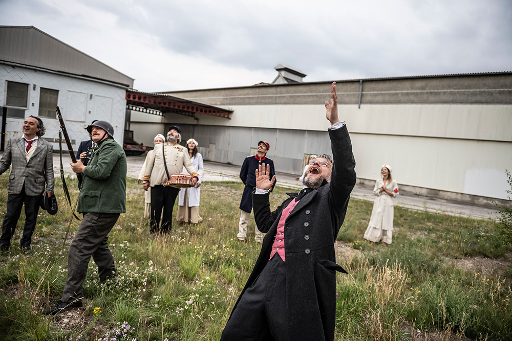 | DIE LETZTEN TAGE DER MENSCHHEIT + + + Regie: Paulus Manker + + + Juli bis August 2018 + + + SERBENHALLE + + + in der Wiener Neustadt + + + "DAS Theaterereignis des Jahres" KURIER vom 28. Juli 2018 "Ein apokalyptischer Grenzgang des Theaters." (Deutsche Bühne) "Eine begehbare, von Flammen illuminierte, von Geschützlärm und Musik durchtoste Skulptur. Ein Gesamtkunstwerk.“ (Spiegel Online) zum Pressespiegel